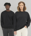 Peached finish. Brushed back fleece. Relaxed fit. Drop shoulder style. Ribbed collar, cuffs and hem. Unbranded size label. Recycled cotton is made from 100% pre-consumer waste.