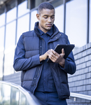 300D polyester outer. Houndstooth printed polyester lining. Recycled Warmloft insulation. Showerproof. Ribbed inner collar. Full length front zip with studded storm flap. Padded inner 12" laptop/tablet pocket. Inner security pocket. Two front zip pockets. Drawcord hem. Zip access for decoration.