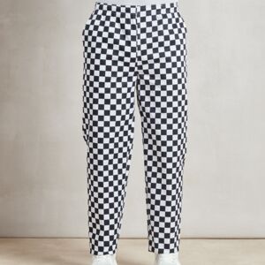 65% polyester/35% cotton twill printed check. Easy care fabric. Unisex sizing. Elasticated waistband with inner drawcord. Two side swing pockets. Industrial laundry 85°C. Domestic wash 60°C.