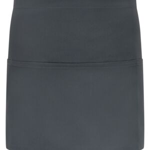 65% polyester/35% cotton twill. Easy care fabric. Three front pockets. Self fabric 95cm ties. Width 70cm. Length 36cm. Wash 60°C. Tear out label.